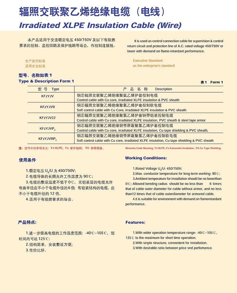 • 產(chǎn)品名稱:輻照交聯(lián)聚乙烯絕緣電纜(電線)